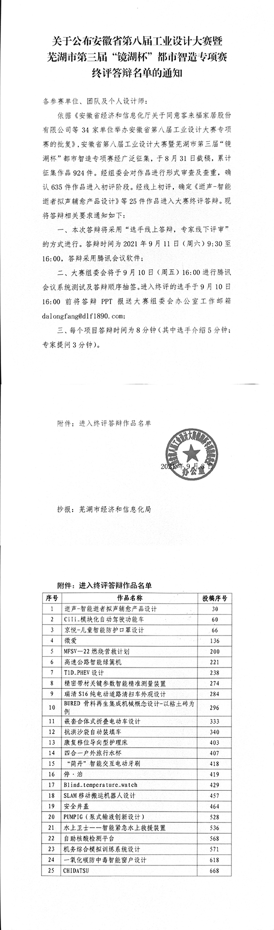 關(guān)于公布安徽省工業(yè)設(shè)計(jì)大賽“鏡湖杯”專項(xiàng)賽終評答辯名單的通知